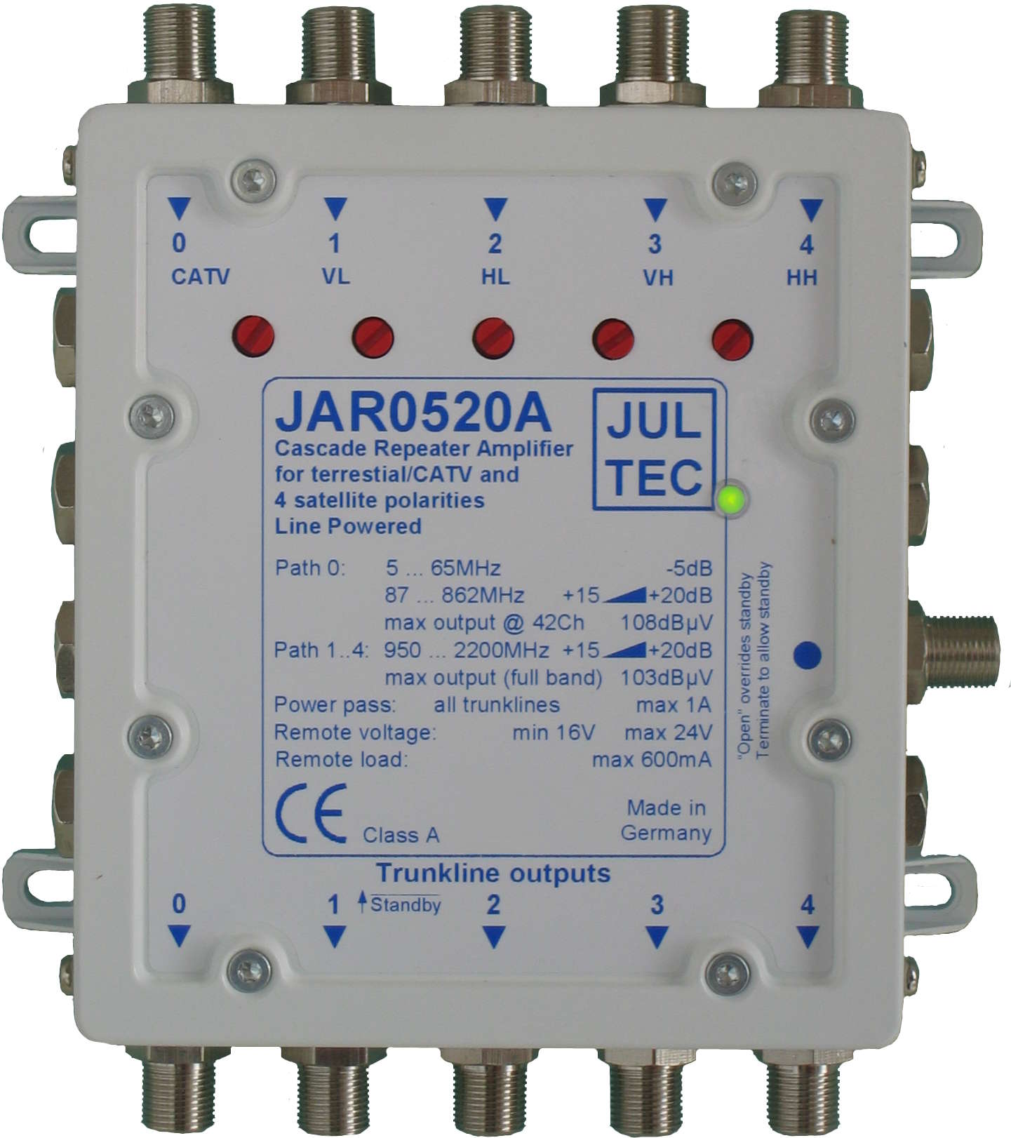 | Max. Ausgangspegel | 108dBµV @60dB CTB/CSO 41Ch. CENELEC | |