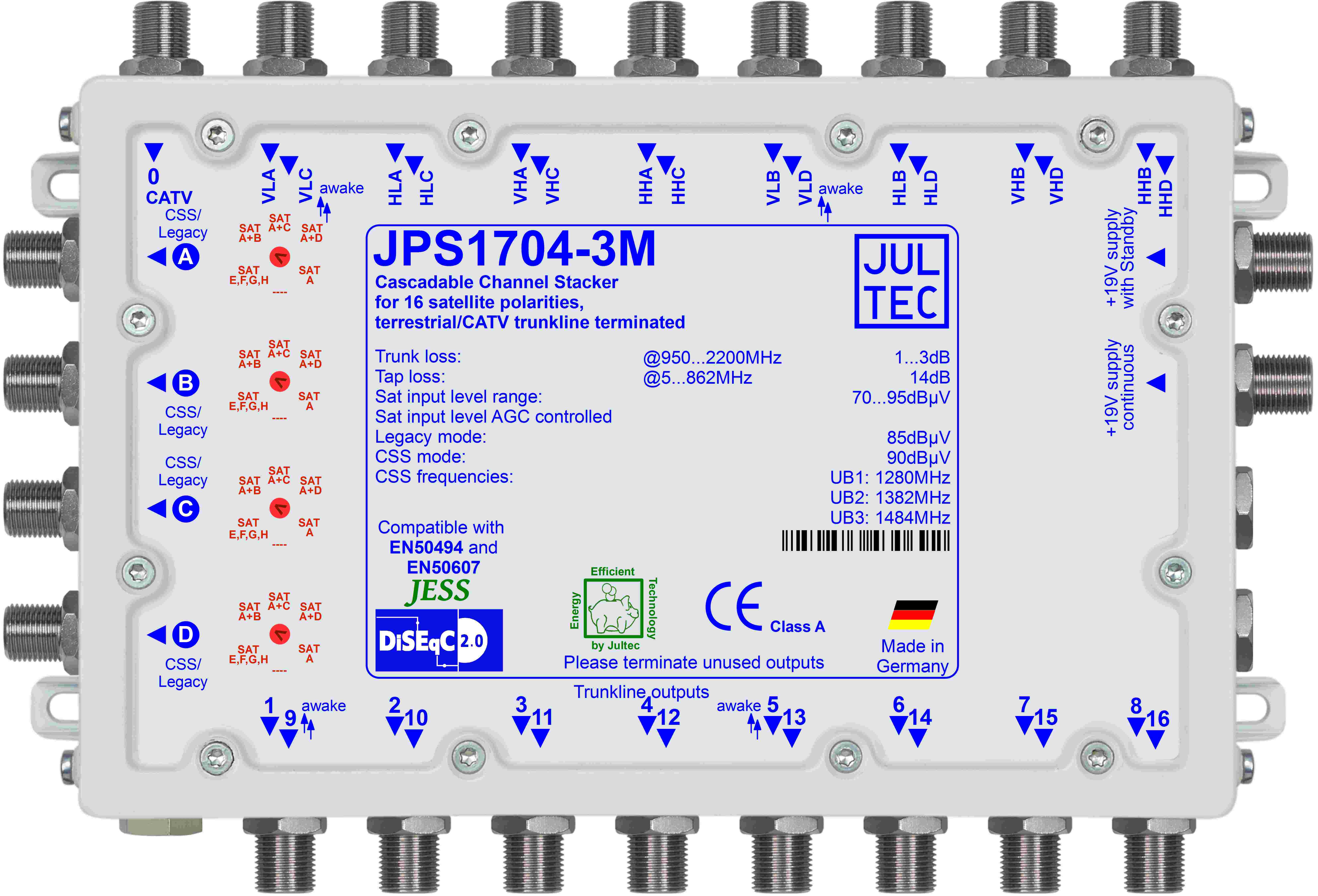 | Einkabelfrequenzen 8 x | 1280MHz, 1382MHz, 1484MHz | ||