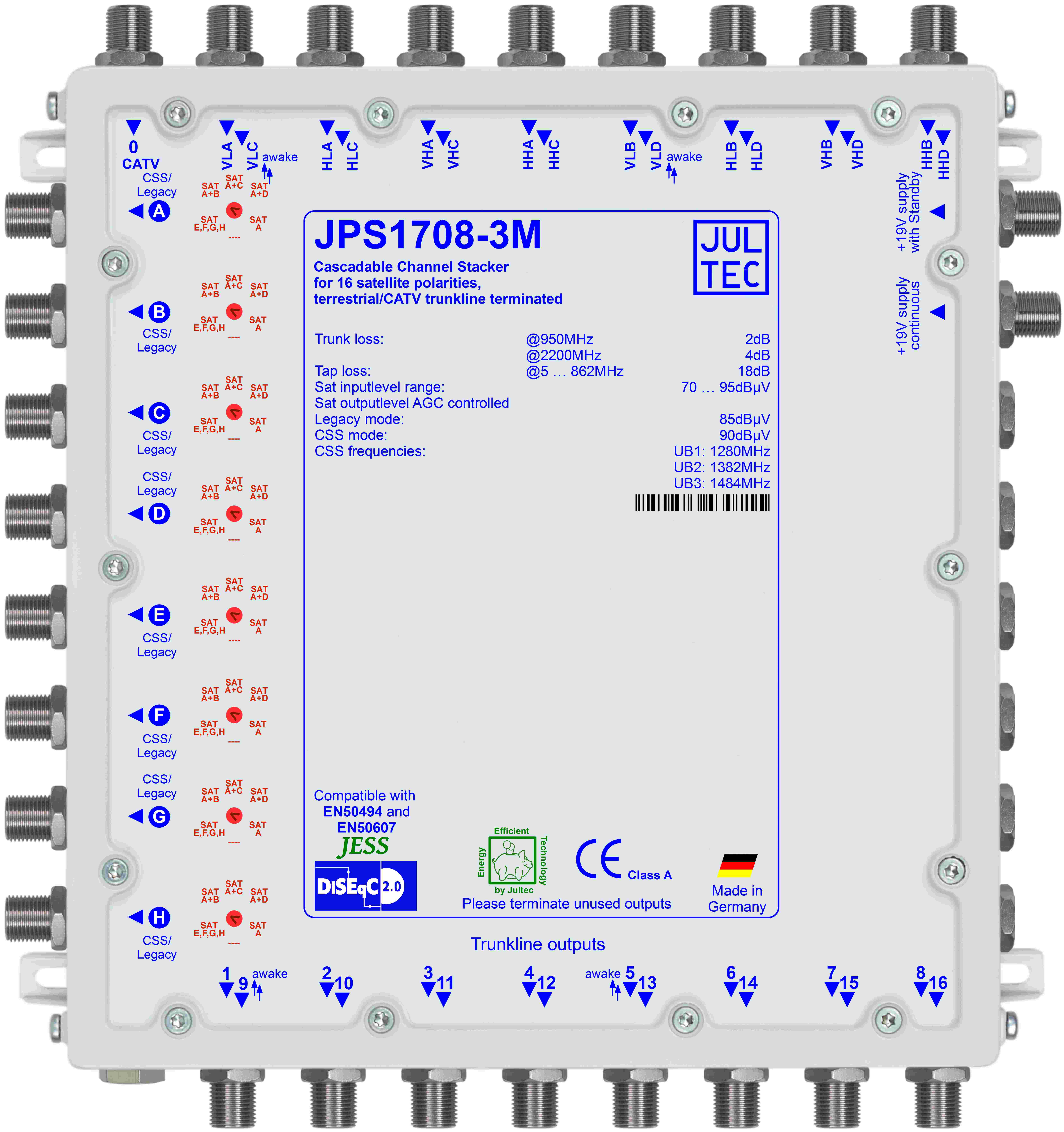 | Einkabelfrequenzen 8 x | 1280MHz, 1382MHz, 1484MHz | ||