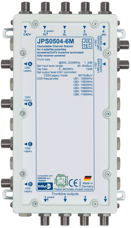 | Einkabelfrequenzen 4 x | 1280 MHz, 1382 MHz, 1484 MHz, 1586 MHz, 1688 MHz, 1790 MHz |
