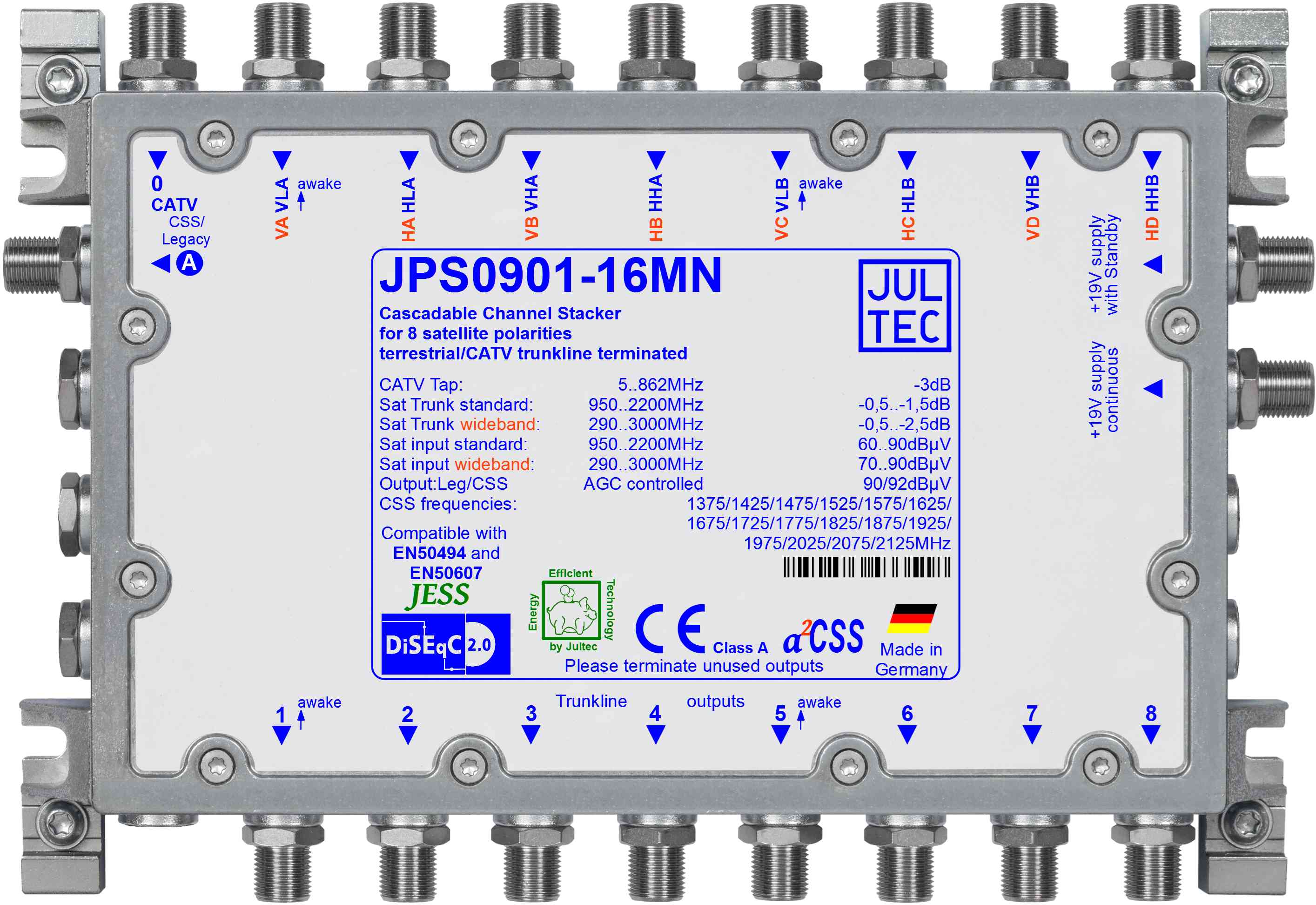 | Stammleitung 950..2200 MHz | 8 x - 0,5..- 1,5 dB |