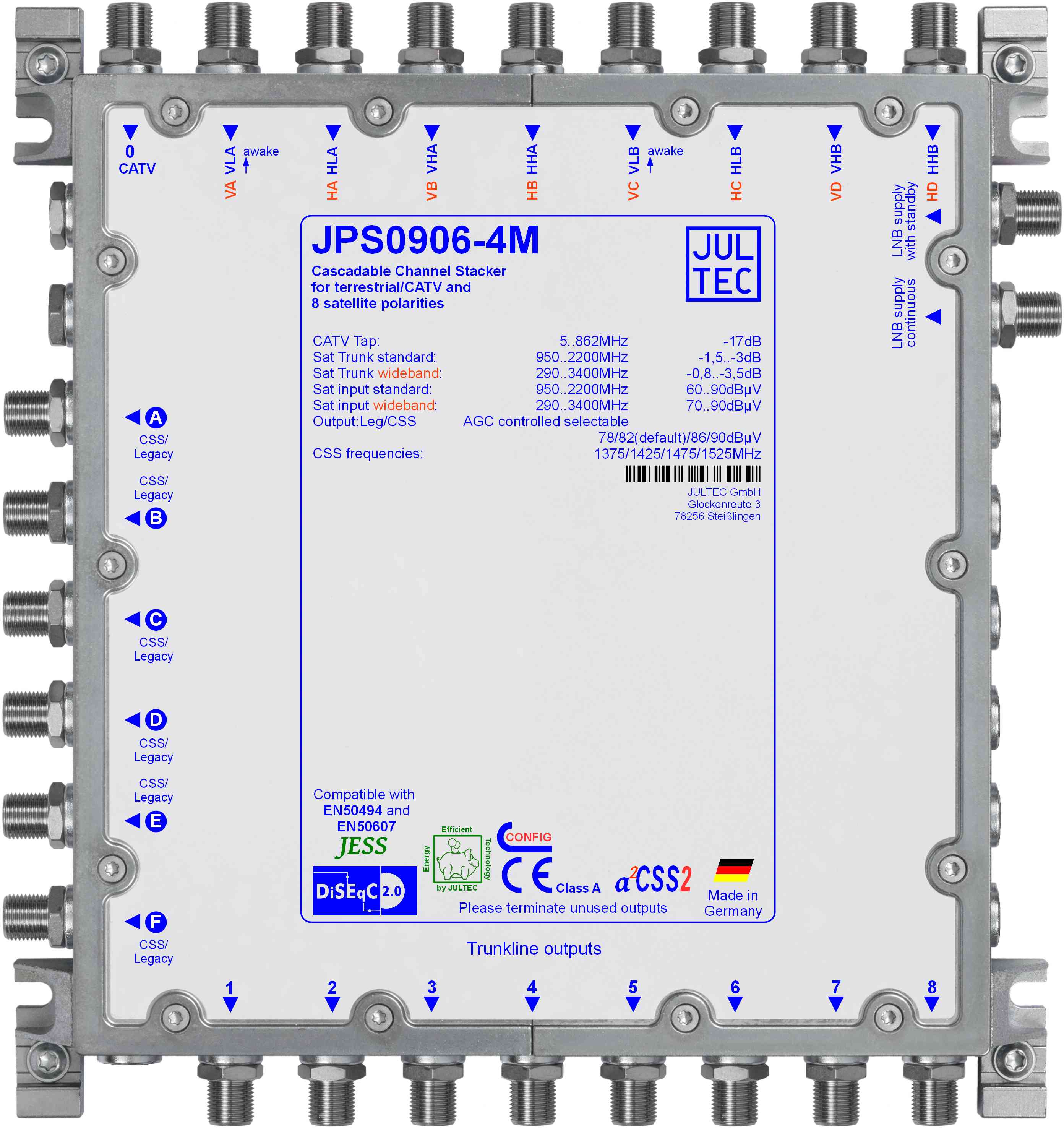| Stammleitung 290..3400 MHz (WB) | 8 x - 0,8..- 3,5 dB |