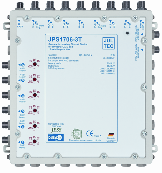 | Einkabelfrequenzen 8 x | 1280MHz, 1382MHz, 1484MHz | ||