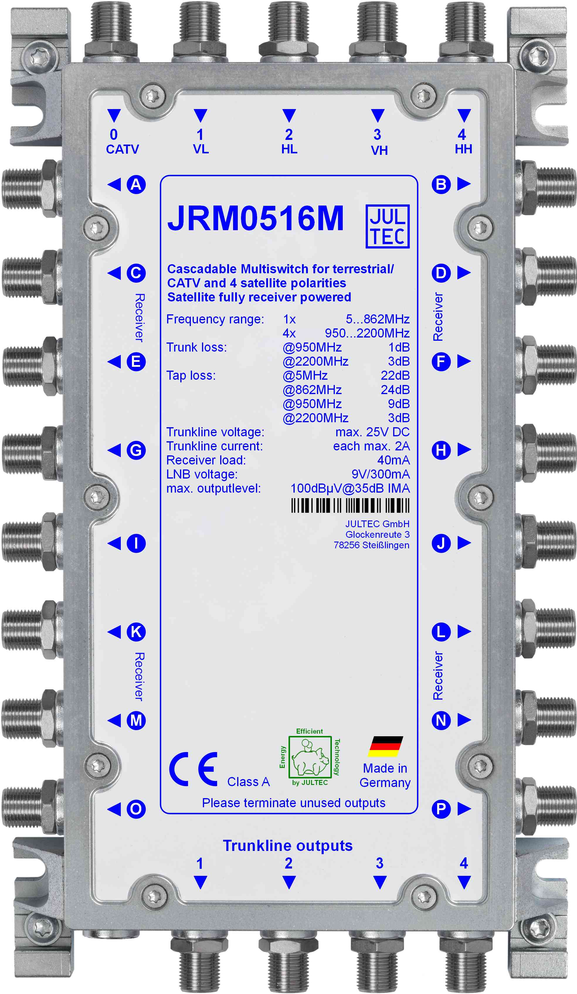 | Max. Ausgangspegel Sat | 100 dBµV @ 35 dB IMA (88 dBµV Vollband) | |