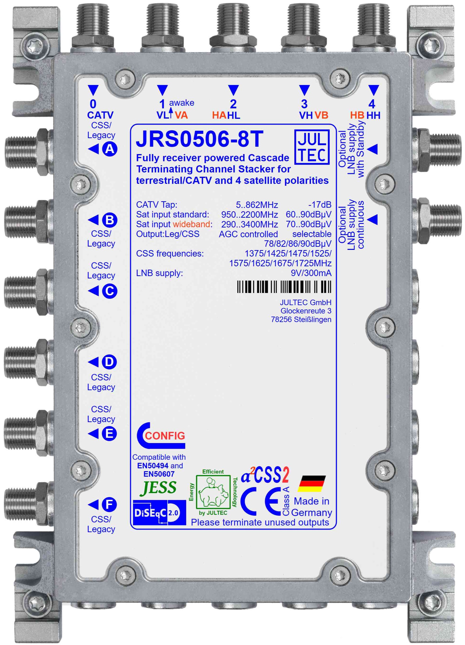 | Schirmung/EMV | CE (EN 60728-2), Klasse A | |